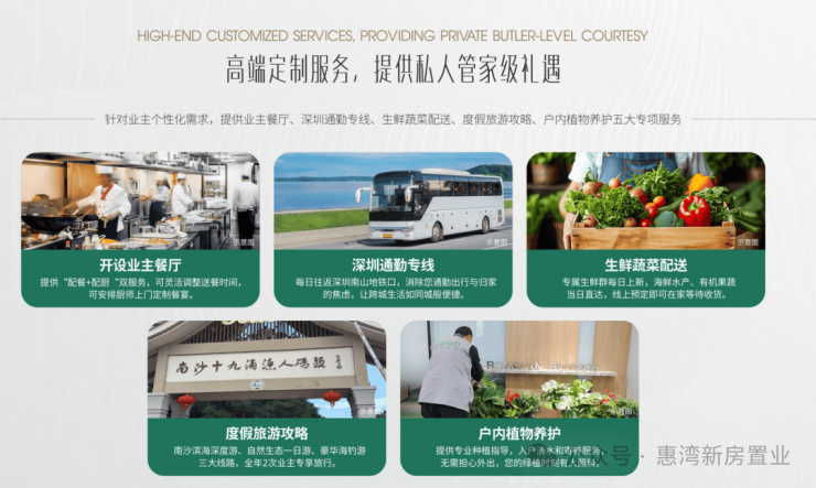 而且,考虑到大家的顾虑,物业服务除了基础服务外,还针对业主个性化需求,提供高端定制服务,有业主餐厅,深圳通勤专线、生鲜蔬菜配送等等。