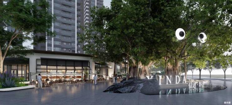 项目内部设有约2730平方米的滨水公园和约4512平方米的繁花逸园,大门处保留了一棵百年榕树,形成了一个集休闲、社交于一体的“榕悦广场”。