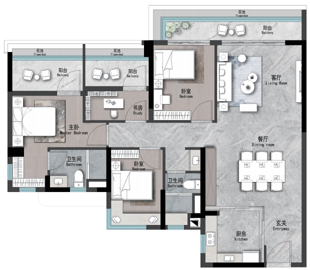 #2 建面约142m² | 4空间二厅三卫