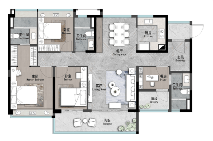 建面约107㎡ | 4空间二厅二卫