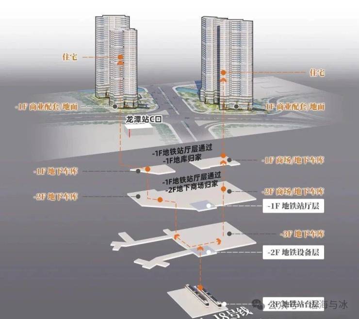 珑璟台作为广州地铁集团开发的项目,打造的是TOD社区,不止地铁连接地铁站台,还利用了裙房、架空层等打造了空中花园和商业体,未来还能通过地铁通道从家直达湿地公园北门。