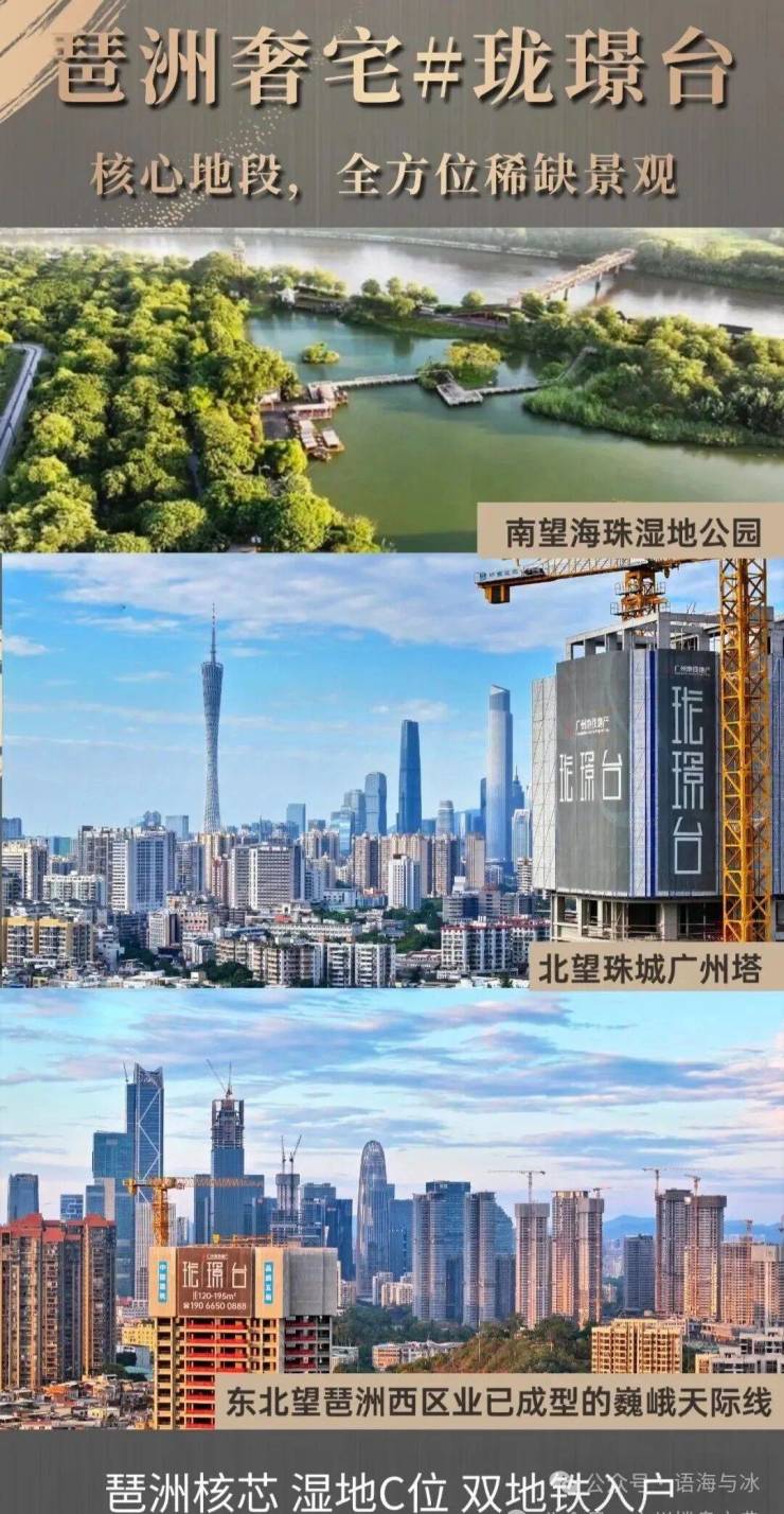 珑璟台所处的琶洲区域,经济实力强劲,2023 年实现营业收入 4479.171 亿,经济密度高达 300 亿 / 平方公里 ,其数字经济增加值占全市 13.5%,为广州 GDP 突破 3 万亿立下汗马功劳。这里每年举办广交会,吸引超 2200 万国内外客流,且入选福布斯中国全国十强中央商务区,是年轻且充满活力的城市极核。珑璟台北面可眺望小蛮腰与琶洲 CBD,直线距离琶洲南约 1 公里,占据城市核心地段,未来发展潜力巨大。