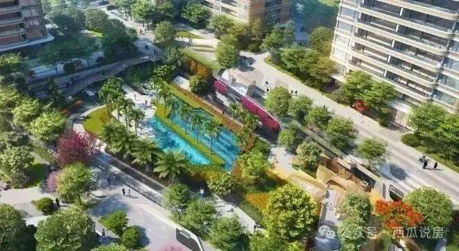 小区园林总面积为3.5万平方米,其中中央区的负一楼设有大型水景、泳池区、瀑布区和儿童游乐区。