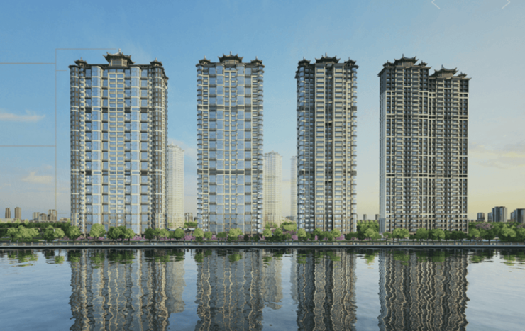 整体规划9栋板楼,南北两排沿江岸布置,户户望江,楼宇间最宽的楼间距173米,小区内部布置中式园林,星河湾半岛五號打造顶奢定位。