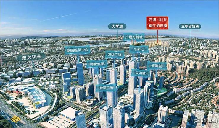 万博珠江城,是由珠江&合生联袂开发打造的超300万㎡产城融合城市超级互联体,集“住宅-商业-产业-交通-教育-生态”于一城。项目分三大块开发,一期是约5000户且成熟兑现的【珠江铂世湾】高端纯住宅区;二期是一线江景的【新基城市更新项目】;三期是计划投资223亿的粤港澳大湾区发展重要节点及省重点建设项目-【广州国际双创城】。