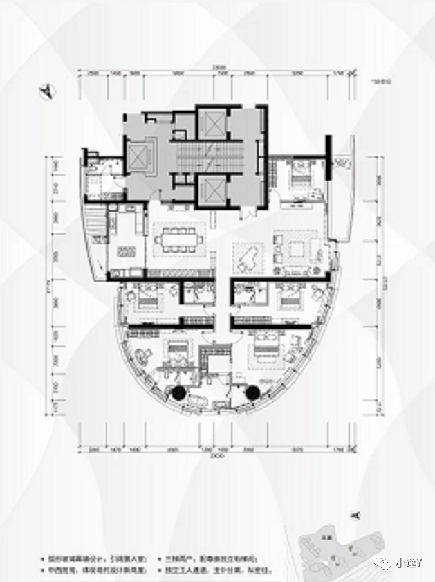以天誉半岛建面约440方三江天境为例,三江天境室内采用LOW-E玻璃落地巨幕,270°领略三江的壮阔尺度;约9米面宽的超大空间,是客厅,亦是仪态端庄的家族朋友聚会场所;