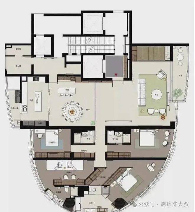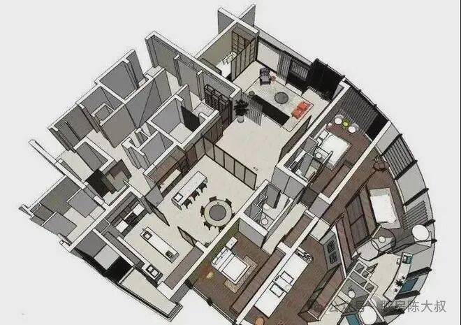 因为建筑本身结构关系。在空间布局上,我们更多的考虑到公共区域,主卧室及小孩房的布局