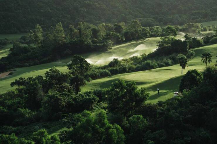 有1个: 1300多亩的18洞72标准杆赛事级高尔夫球场,群山怀抱下,蕴藏着生机和美感。