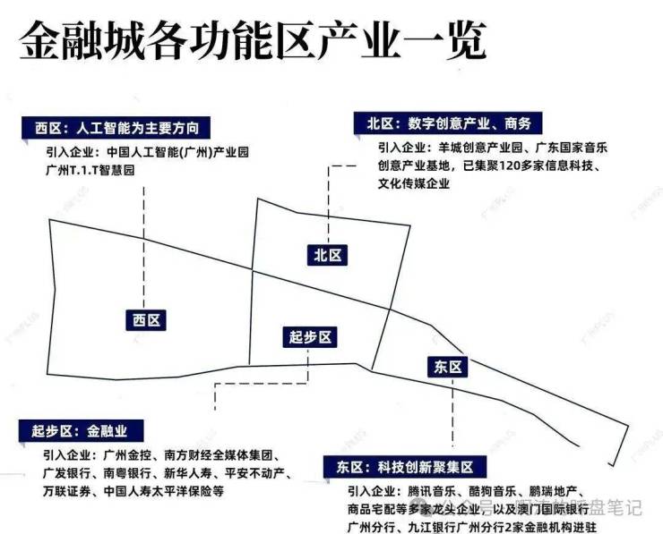 根据规划,金融城北区将作为湾区金融+科技产业融合创新发展的示范区,目前,北区已集聚120多家信息科技、文化传媒企业,像是酷狗、荔枝FM、网易等企业已进驻,孵化出9家上市公司,年产值超过300亿。