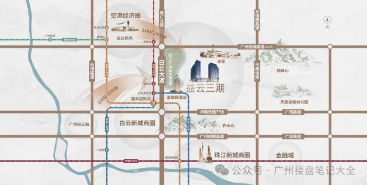 ⭕ 毗邻干道:紧靠主要干道白云大道