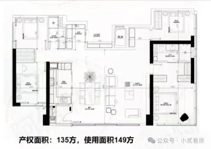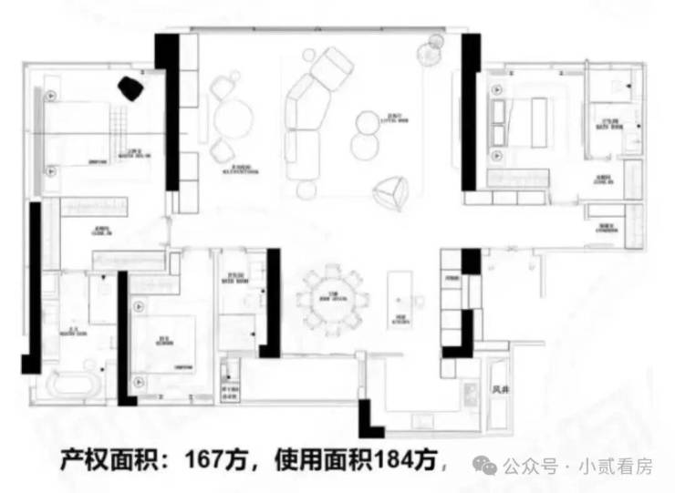 项目规划主打5栋165-250㎡大平层产品。以约165平为例,是广州唯一的4+2房3卫双主套布局,客餐厅空间达到约60平,拥有近19米四开间观江面,比同类200平的瞰江产品还要牛。