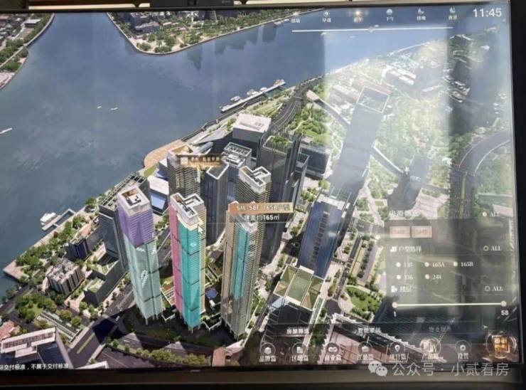 共5栋楼,总高56-58层,首推1/5栋,1栋57层,43层以下是两套176方的,45-57层是一套248方的,5栋是塔楼,一户139,两户165,超新规产品,得房率据说有130%。