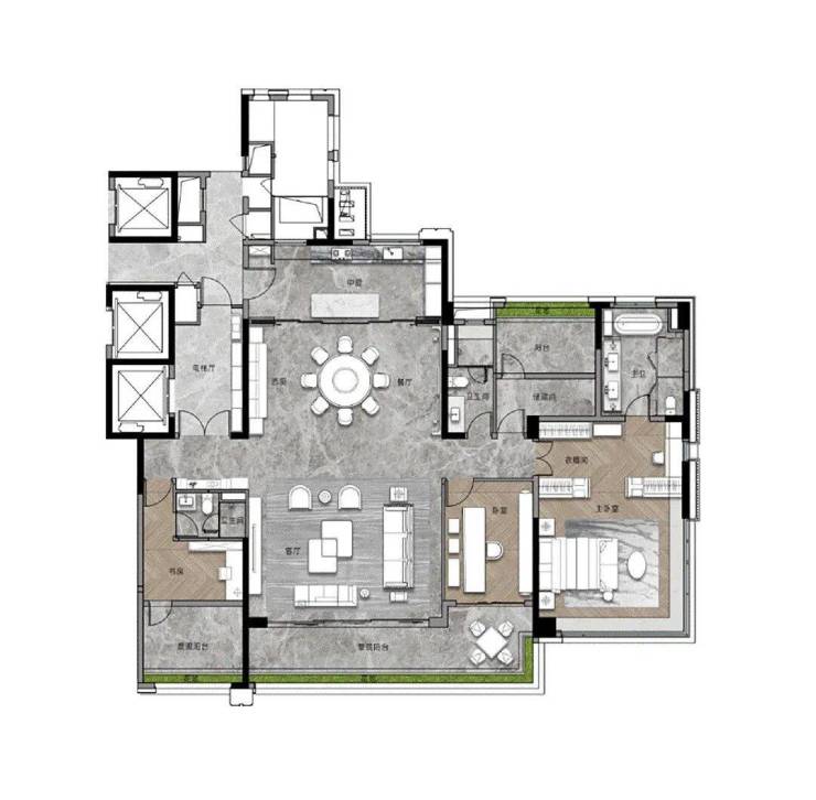 我们再来看看此次加推的268平的大面积户型,作为项目的旗舰,暗藏着哪些巧妙的设计?