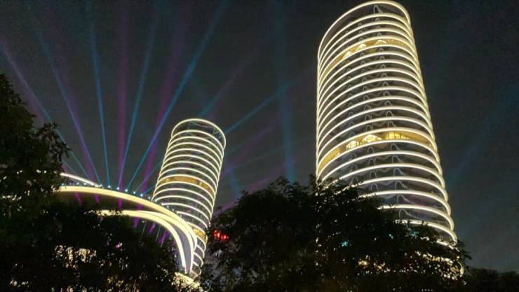 广州·鹏瑞1号的造型,设计灵感就来自于波光粼粼的珠江,采用“外圆内方”的造型也暗合中国的传统。(如上图)