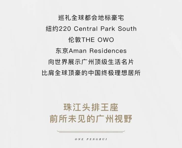 广州鹏瑞1号位于广州市天河区黄埔大道东806号,占地约5.42万平方米,建筑面积高达29万平方米。该项目包含6栋高层住宅及公寓、奢华酒店、高端商业区等复合业态,配备环幕天际泳池、艺术展厅等高端设施。其地理位置优越,交通便利,周边教育资源丰富,已成为广州乃至大湾区的豪宅标杆。