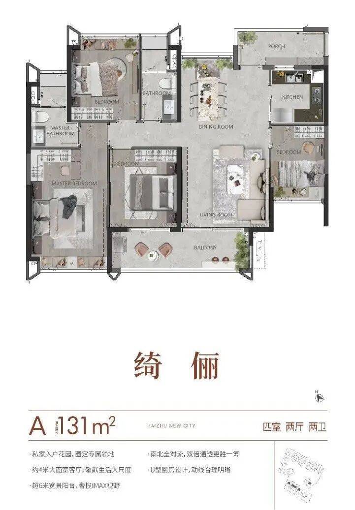 珠光海珠新城每个户型都有私家入户花园,为住户定制专属领地、还有约4米大面宽客厅,敬献生活大尺度、超6米宽景阳台,奢揽IMAX视野、南北全对流,双倍通透更胜一筹、U型厨房设计,动线合理明晰。