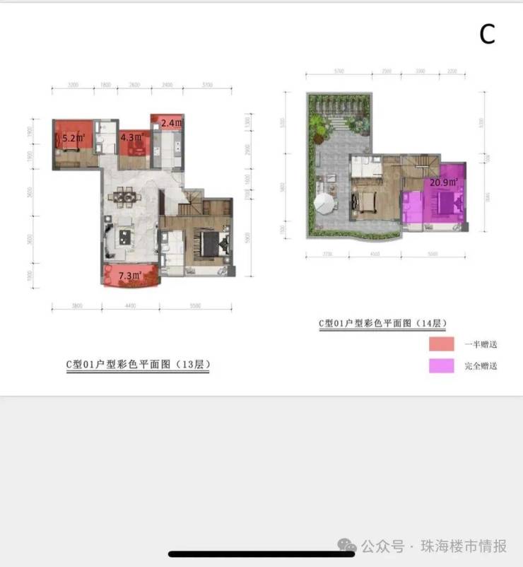 以下是C户顶楼复式户型图
