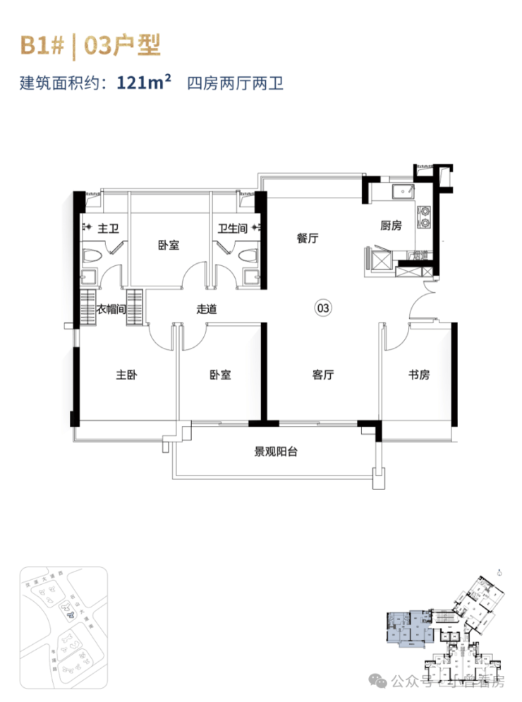 124㎡四房作为PLUS版本,在121㎡的基础上增加了餐厅北侧的生活阳台,景观阳台也延伸至书房,储物与观景功能更完善 。