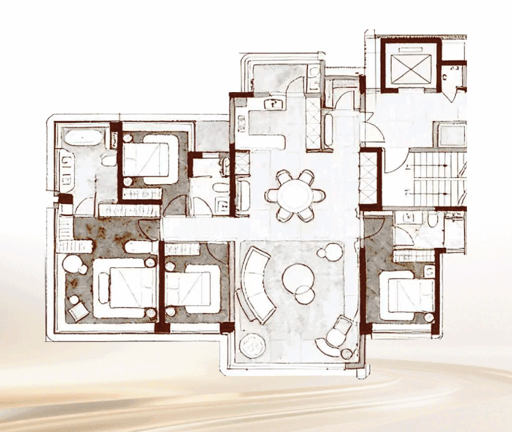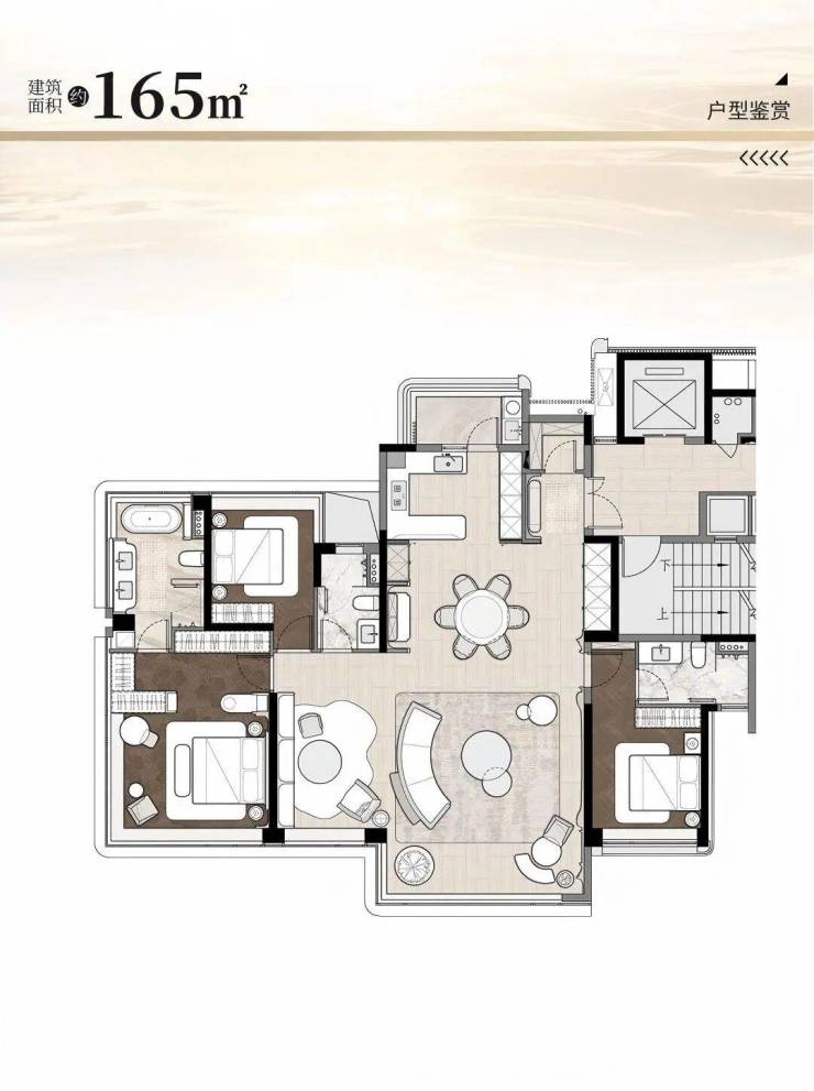 全盘只做一个面积段,约165㎡,四房两厅三卫,标配双主套+专梯专户