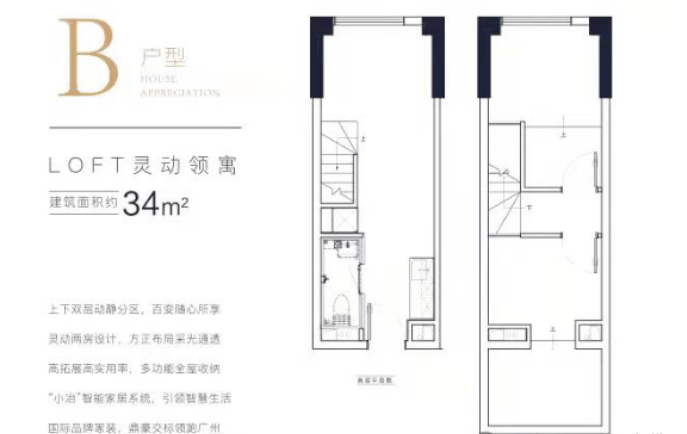 34平方米的户型分两种,A户型南北朝向,双钥匙设计总价约170-175万元,E户型则是单层两室两厅