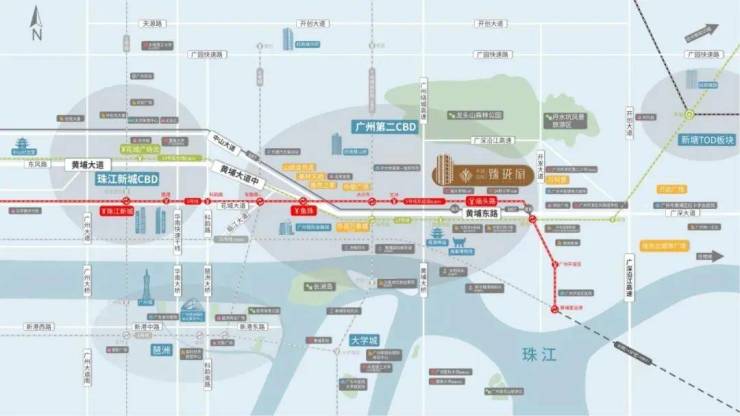广州城市发展以“东进”为城市战略发展,已形成珠江新城CBD、国际金融城、鱼珠及临港经济区的“黄金经济连廊”。