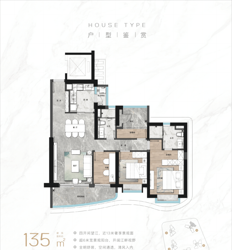 🔘【135㎡王牌东南向滨江四房】