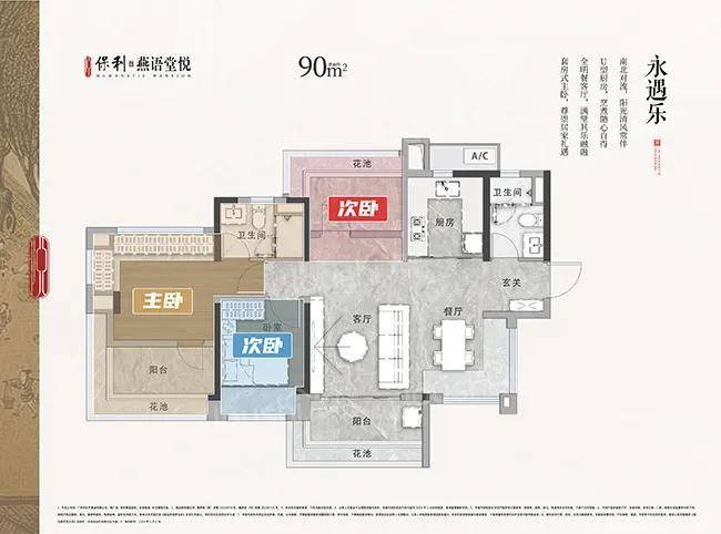 90-94㎡三房:6米宽厅+20㎡客厅,飘窗延展成“观景台”,主卧24㎡堪比改善型配置。