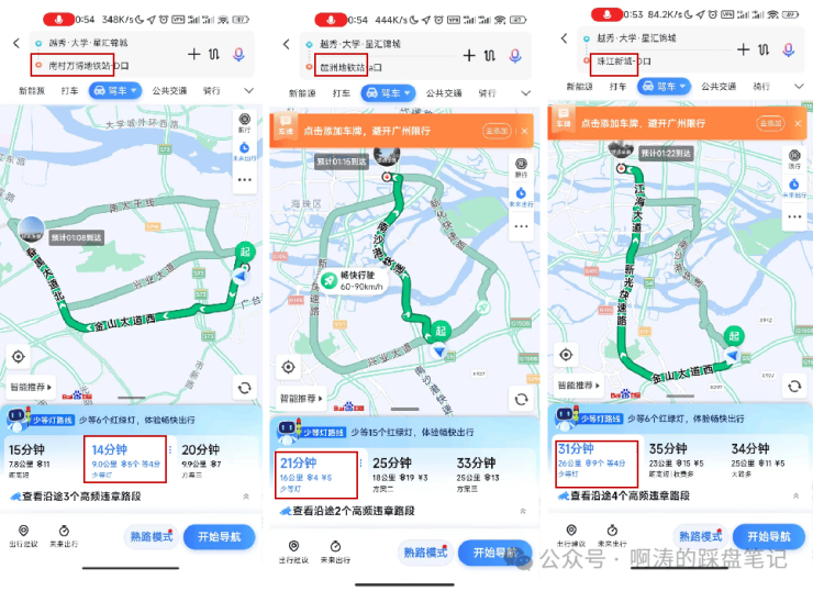 ②14分钟:南村东线路→金山大道中路→番禺大道北