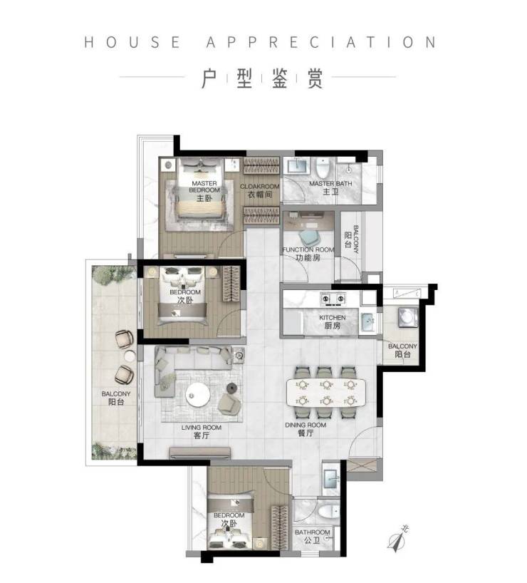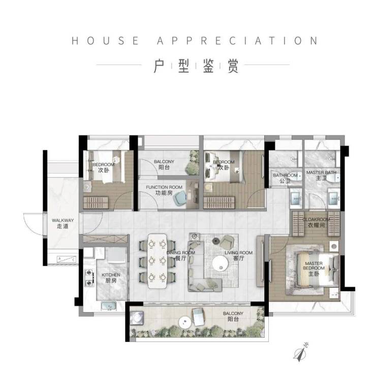 ·双阳台对式,多段式 LDKG 超 长通厅。