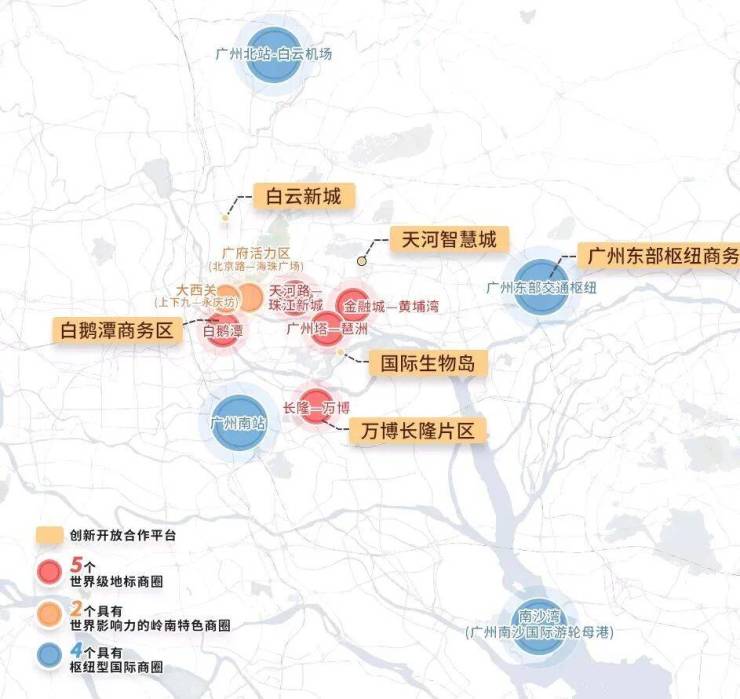 2021年4月,《广州市建设国际消费中心城市发展规划(征求意见稿)》发布,广州将打造“5+2+4”国际商圈体系,广州南站将打造世界性超大TOD,将区域升级为湾区枢纽门户,筑就广州枢纽型国际商圈。