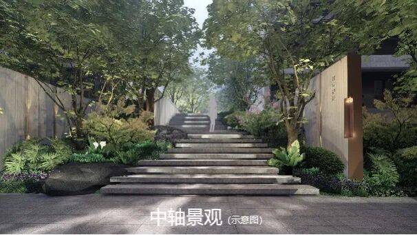 ▪【景观中轴】规划“入山 - 穿林 - 登高 - 望远”的园林景观中轴,形成一轴三横邻里花园,营造登山入林式归家感受。