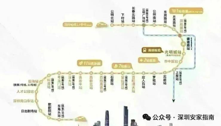 交通配套:观玥名邸家门口就是13号地铁线“德雅路站”,以前的同观路站已经改名,最高时速100公里,预计2025年开通运营,1站可到光明城站,换乘6号线/光明城高铁站,3站可到石岩,7站到西丽,8站到留仙洞总部基地,11站到南山高新园。