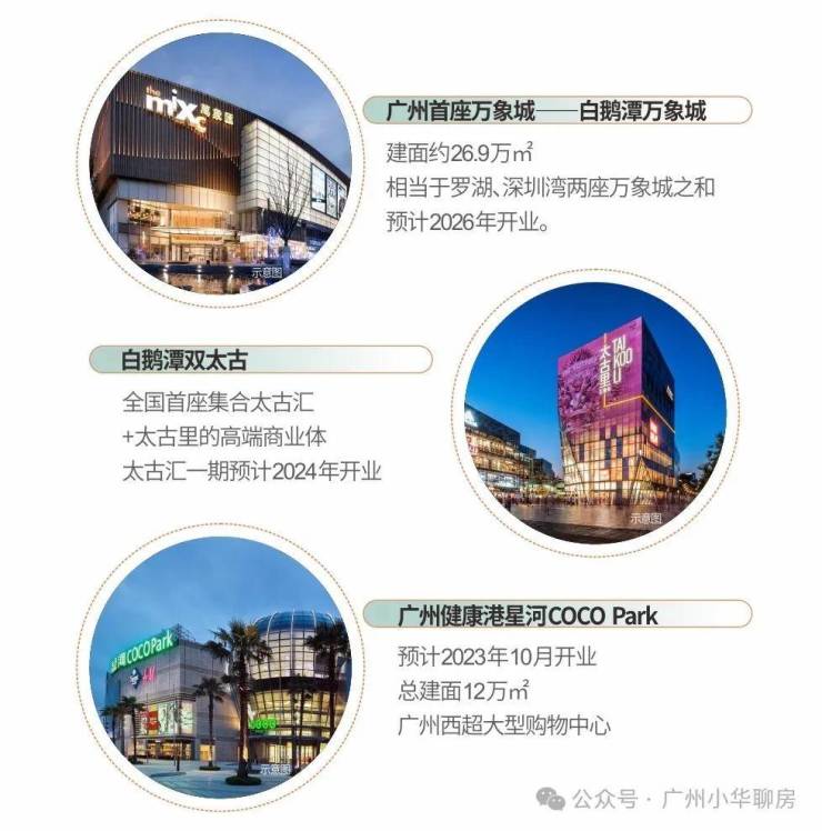 白鹅潭商务区:广州市重点培育的五大世界级地标商圈之一,规划面积达36平方公里,相当于6个珠江新城;