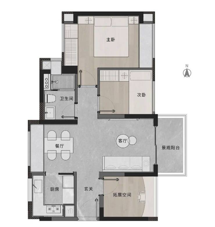 建面约69㎡ 东向精致2+1户型,通透设计