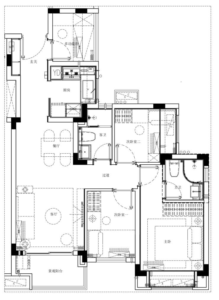 建面约110㎡ 正南向阔朗4+1户型,宽敞舒适