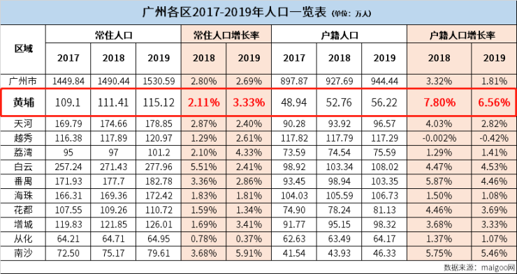 近4年来黄埔平均户籍人口增长率高达6.97%,相当于19倍越秀区人才引进量!