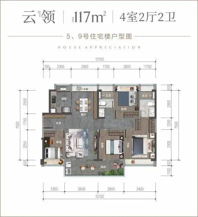 建面约117㎡四房,采光面和景观面约12m,270°朗阔阳台,四季景致肆意入宅,厨房-客餐厅-阳台一体设计,流畅动线充盈全家幸福尺度,生活井然有序,是二胎家庭的优选。