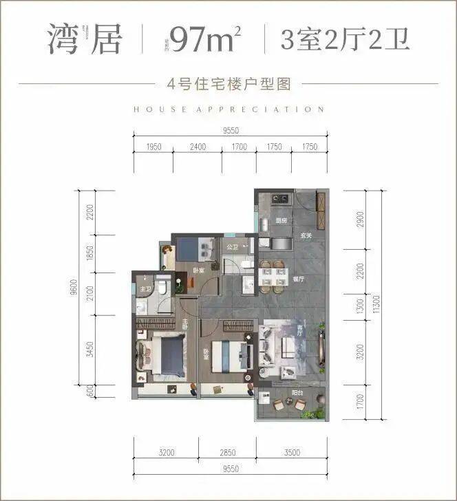 建面约97㎡三房,享有约9.5m朝南面、极致采光通透体验,保证家庭空间日照充足,日常即能享受到常驻的温暖阳光,在家中皆可收藏四季美景的变换。