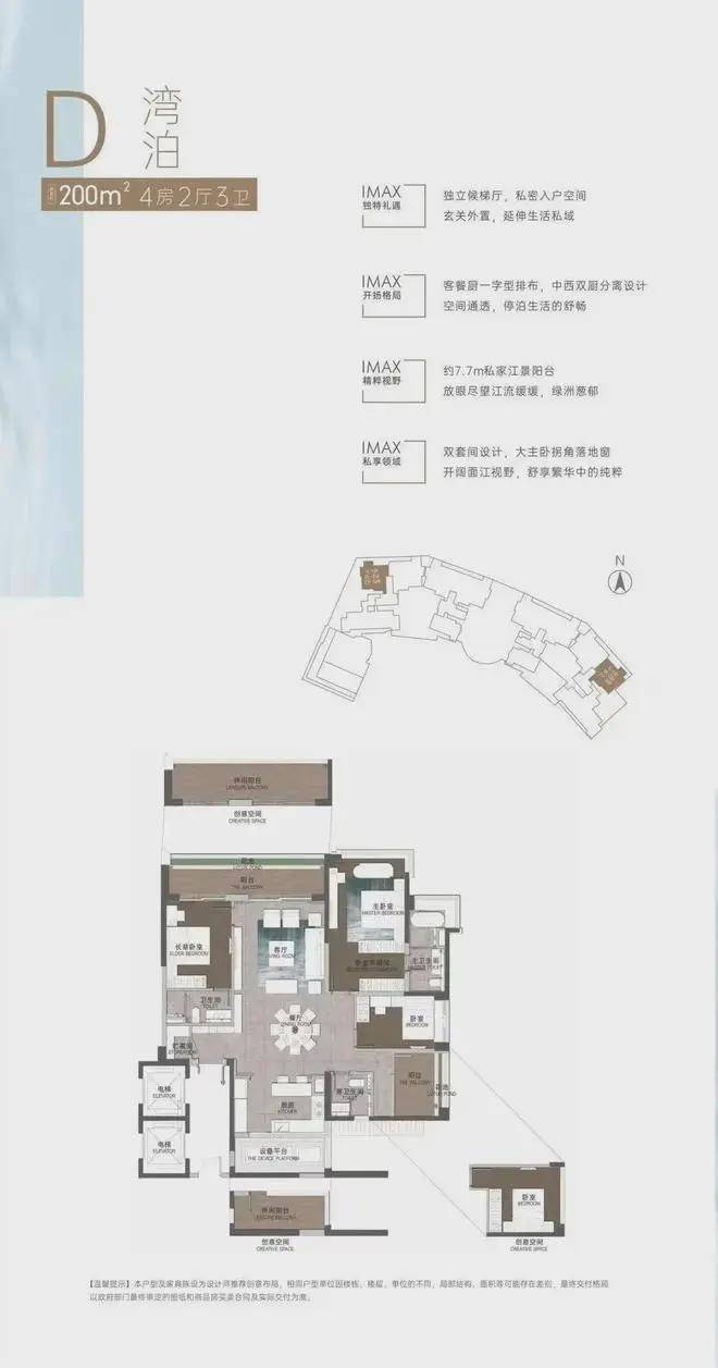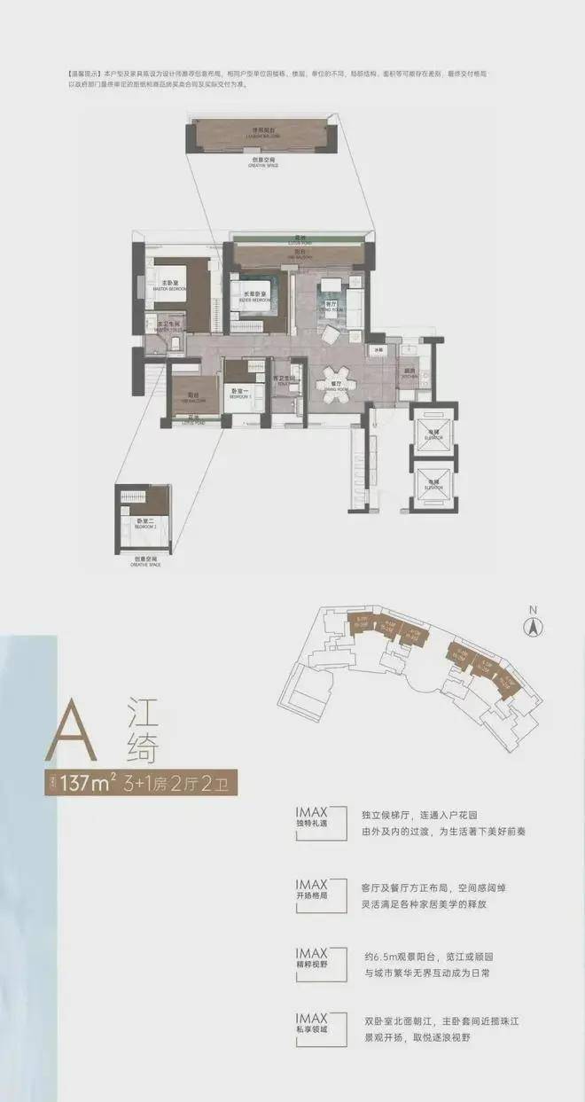 低区以朝向为主导,布置140m²轻奢产品;高区以景观为主导,布置190~250m²豪宅产品;拥有一线江景资源的顶层北侧则打造350~420m²奢华大平层户型。