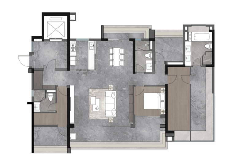 「港式户型」对标香港豪宅设计手法,空间布局注重业主自我及家人居住舒适性。