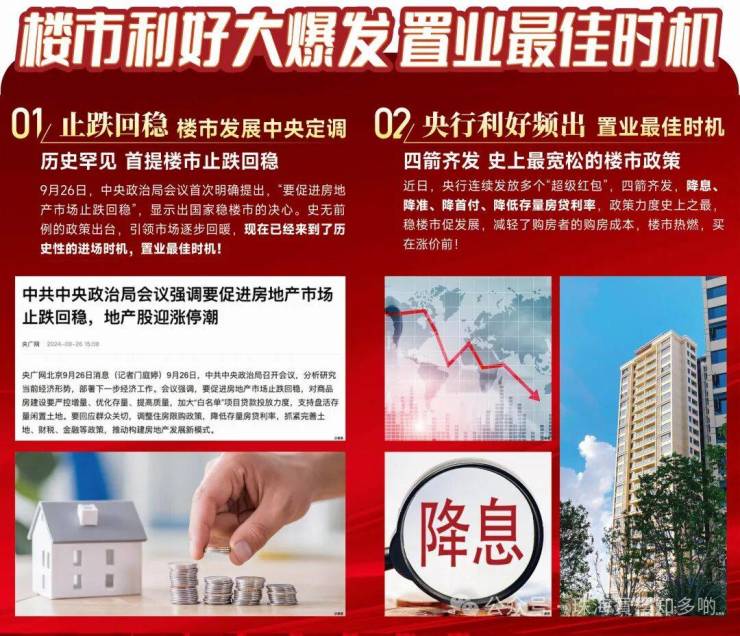央行利好频出,降息、降准、降首付、降低存量房贷利率“四箭齐发”,史上最宽松的楼市政策。