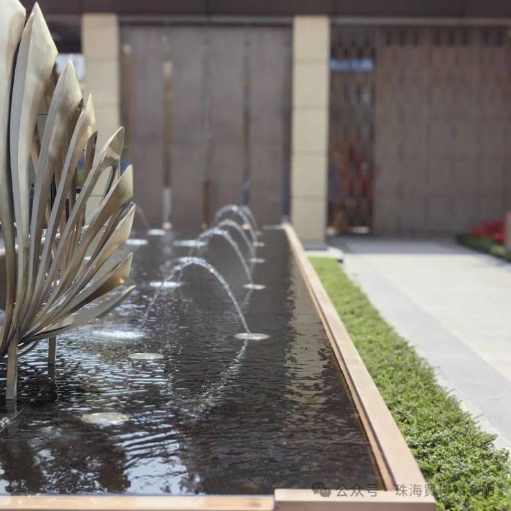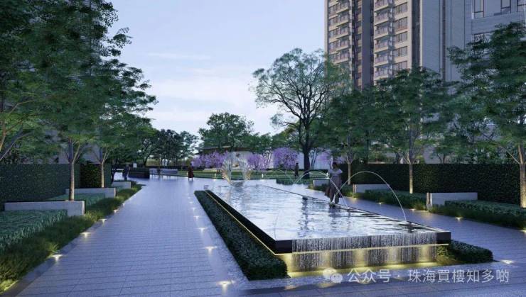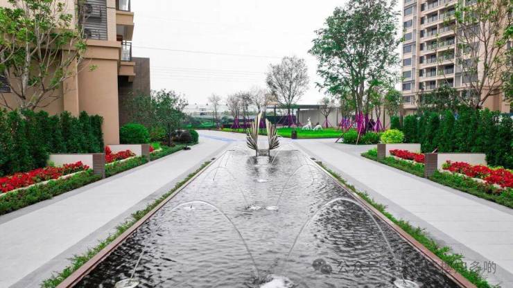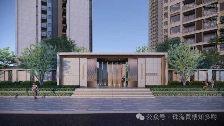以自然香樟树围合、全石材入口迎宾门楼打造,从流光门楼,到中轴光影水景,再到艺术入户大堂,均不惜成本重金筑就。