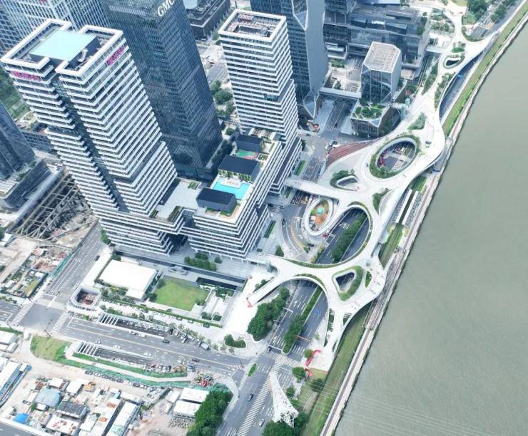 而滨江立体交通串联19栋总部大厦,实现从家→公司会议室→大厂路演厅,快速的步行圈闭环,释放出无法用资金计量的时间资源。