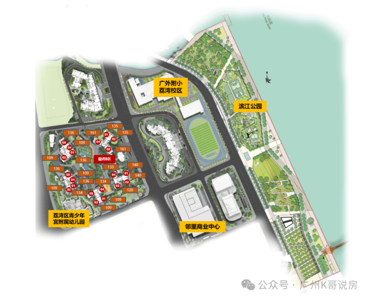 广州滨江天地总共规划了2所幼儿园,2所小学。