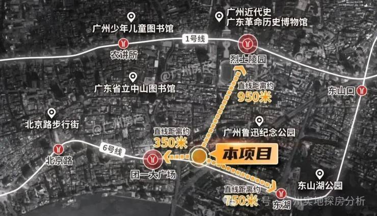 项目距离地铁6号线团一大广场站约350米,东湖站约750米,1号线烈士陵园站约950米。