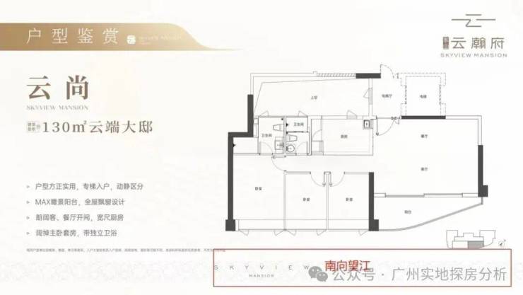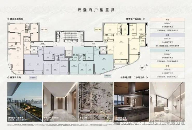 140㎡南向4房2厅2卫:六开间超南,超17米南向面宽,四面采光单边户。