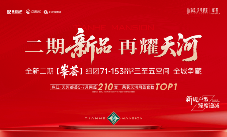 珠江・天河都荟由珠江实业集团、广州城投集团、天河投资集团三大国企强强联手打造,品质值得信赖。项目位于天河中轴智慧城芯,占地面积约 5.5 万㎡,计容建面约 11.5 万㎡ ,二期容积率约 2.5,以低至 14 层的小高层为主,户户朝南,打造低密奢境。首推约 71 - 144㎡全南向新规产品,空间设计合理,使用率高,兼具科技感与舒适度。