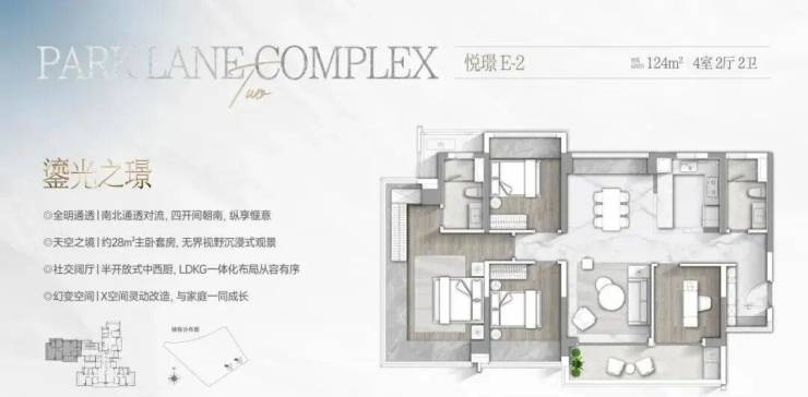 • 二期升级版:108-124㎡全南向四房,新增U型飘窗、灵动空间改造,总价600万起。