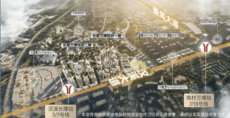通勤效率:地铁3/7/18号线三线交汇:步行8分钟至汉溪长隆站(3/7号线),1.2公里至南村万博站(18号线)。