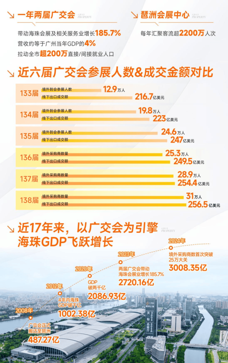 作为广州发展最迅猛、最具活力的核心区域,琶洲依托数字经济总部与广交会双轮驱动,持续释放强劲动能。刚落幕的第138届广交会吸引超31万全球客商参会,带动周边商贸、酒店、物流等产业经济效益超50亿元,进一步巩固其国际会展中心地位。